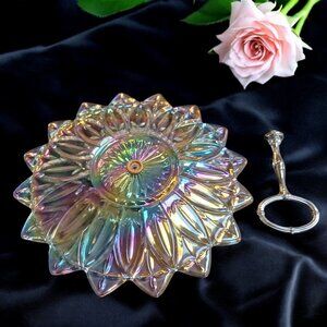 Vintage Federal Glass Iridescent Petal Hostess Serving Plate 1Tier Flower Shape