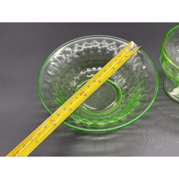 Vintage Federal Glass Pear Optic Green Depression Glass Sherbet Cup & Bowl Set