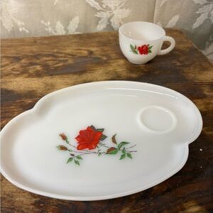 Vintage Federal Glass Rosecrest Pattern Snack Set with Cup and Plate