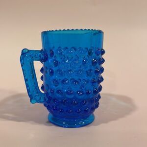Vintage Fenton Art Glass 3" Colonial Blue Hobnail Mini Pitcher Creamer EUC