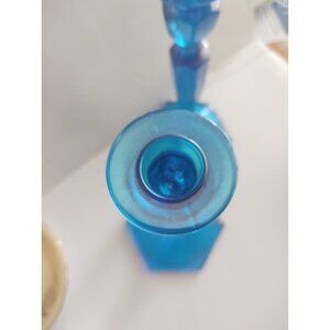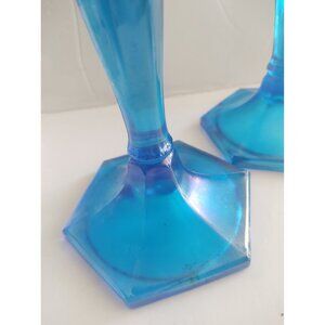 Vintage Fenton Celeste Blue Stretch Glass Candle holders(2) Model 449