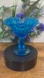 A stunning vintage compote vase made by Fenton in the Colonial Blue colour. This piece features the classic thumbprint pattern and a ruffled edge, giving it both texture and movement. With its pedestal base and deep blue tone, it is a versatile piece that can serve as a compote, centerpiece, or decorative vase. A beautiful example of Fenton's mid-century pressed glass artistry.