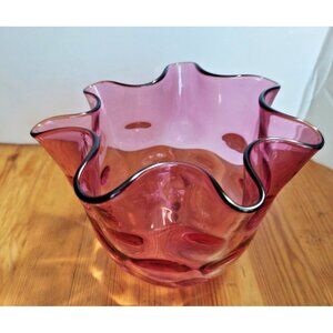 Vintage Fenton ''Dot Optic'' Cranberry Glass Ruffled Edge Vase