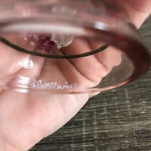 Gorgeous diamond optic style glass bell in a soft pink/peach. Hand painted with florals and signed on the inside by the painter. This Fenton piece is absolutely stunning. Based on research they are all painted a bit differently so this may be the only one with this pattern (I am not 100% certain I just haven’t been able to find another one the same- if you know please let me know!).