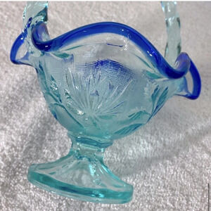 Vintage Fenton Intaglio Tranquility Basket Aqua Cobalt Blue Edge Flowers Leaves