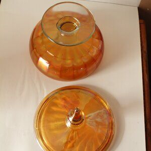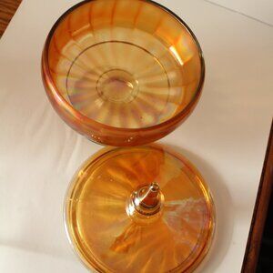 Vintage Fenton Iridescent Marigold Carnival Footed Covered Candy Dish