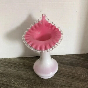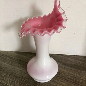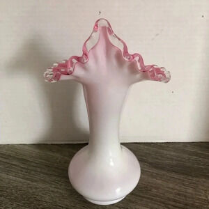 Stunning jack in the pulpit style vase with a ruffle edge. Made by Fenton in the USA. I believe this is a 60s piece. I would have to double check my product catalog to be 100% sure. Excellent condition no chips or cracks.