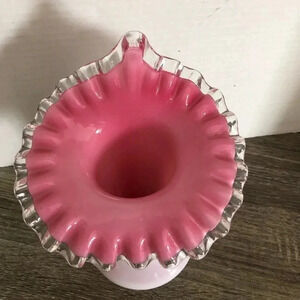 Stunning jack in the pulpit style vase with a ruffle edge. Made by Fenton in the USA. I believe this is a 60s piece. I would have to double check my product catalog to be 100% sure. Excellent condition no chips or cracks.