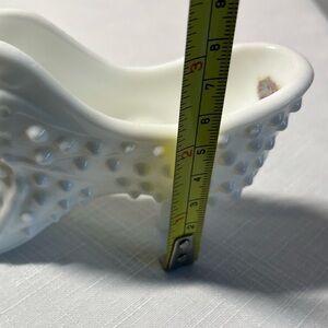 White Milk Glass Hobnail Shoe Slipper Cat Head Figurine W/Sticker