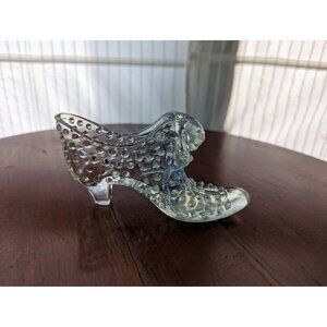 Vintage Fenton opalescent hobnail dress shoe, pearlescent cat head glass slipper