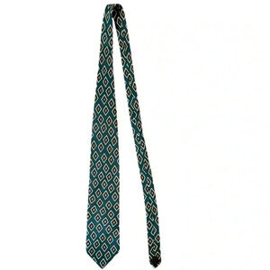 This classic tie from Ferrell Reed for Nordstrom is a luxurious accessory, hand-printed in Italy and made from a premium blend of silk and wool challis. It features a stylish diamond pattern in rich tones of teal, gold, and navy blue, perfect for elevating your formal or business attire.