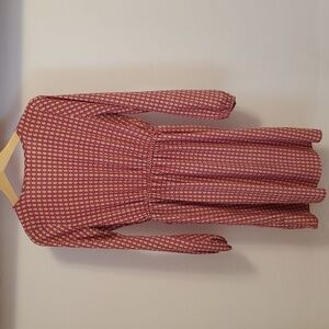 Vintage Fervour long sleeve dress. Red, white, navy blue pattern. Boho. Size M.