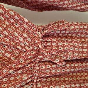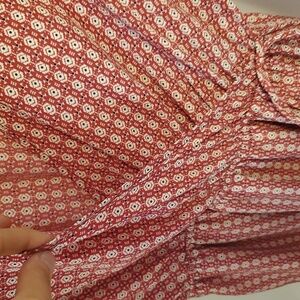 Fervour faux wrap long sleeve dress. Red, white, navy blue pattern. Boho. Size M, see pictures for measurements. Bow detail (just a decoration). Elastics at the end of each sleeve. Fabric is very light and flowy. Dress in around 37" long. Excellent condition. No stain, no rip. Non smoking house.