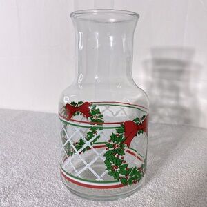 Vintage Festive Christmas Carafe Glass Juice Jar Pitcher