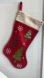 Bright red stocking adorned with green trees and white snowflakes. Adds a festive touch to your holiday decor.