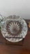 This vintage pressed glass ashtray features a classic design, making it a beautiful addition to any collection or home decor. The clear glass catches the light, showcasing the intricate starburst pattern in the center and the ribbed, faceted sides. Its sturdy construction suggests durability, and its timeless aesthetic blends well with various styles, from mid-century modern to traditional.