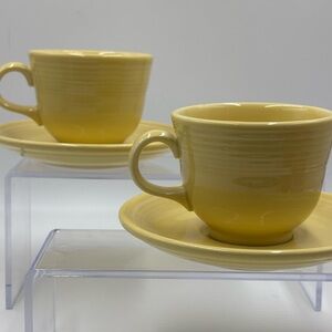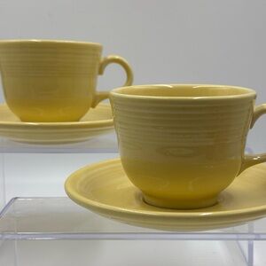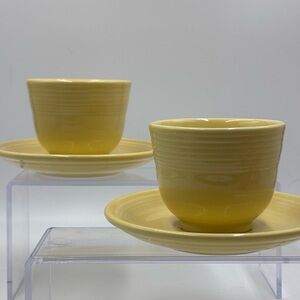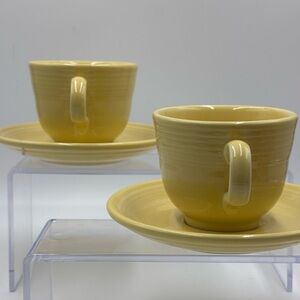 Vintage Fiestaware Soft Yellow Teacups w/Saucers. Coffee Mugs.