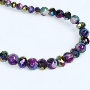 Vintage Fifth Avenue (FAC) Glass Round Beads Necklace with some Aurora Borealis Faceted Beads