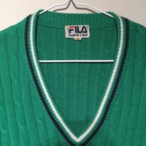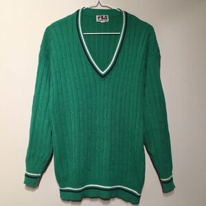 Green knit oversized boyfriend varsity style preppy sweater. Fila brand. Super comfy. Tag says XL but looks good as loose oversized fit.
