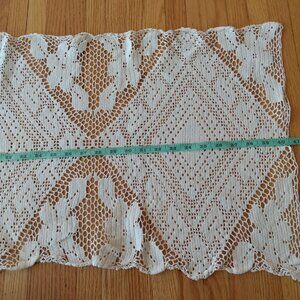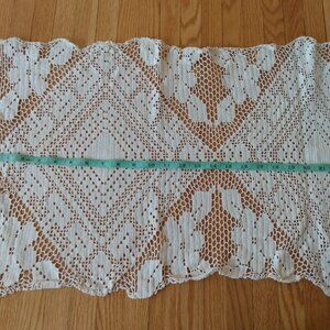 Vintage Filet Crochet Table Runner 40.5" by 17" Diamonds Flowers White Cotton