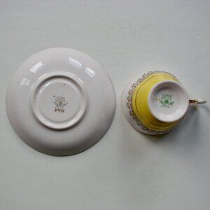 Vintage Fine Bone China Teacup and Saucer Pink Yellow Gold Gilt Tuscan England