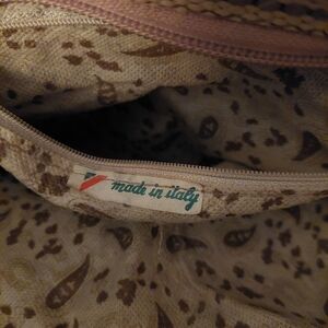 In excellent used condition. Extra long strap for over the shoulder comfort. Made in Italy. Fiona. Approx 16" x 4.5" x 9.5".
