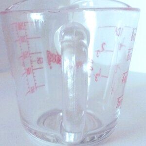 Vintage Fire King - Anchor Hocking Glass Measuring Cup 8 oz/1 Cup. Clear With Red Lettering.