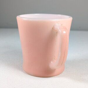Lovely vintage pink milk glass mug marked Fire King Ware, Anchor Hocking, U.S.A. With marks of age and use, could possibly be cleaned more but I did not want to scrub it too hard. No chips, no cracks. This mug cannot be put in the dish washer (it´ll ruin the colour and finish) and the colour and satin gloss finish still looks great!