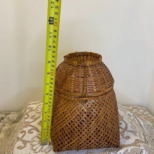 Very unique and rare! This is a rattan fish trap basket that can also be used as a vase for dried or artificial flowers.