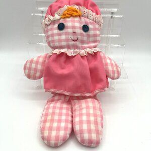 Vintage Fisher Price Cholly Dolly Blue White Checkered Boy Doll Rattle 1977 12”