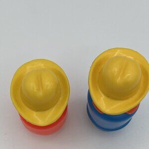 Vintage Fisher Price Little People Farmer (Blue body) & Son (Red body)Yellow Hat Farm Figure