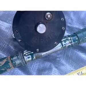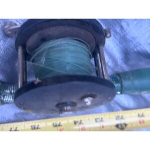 Vintage Fishing Equipment Fishing Rod & Reel Green Handle