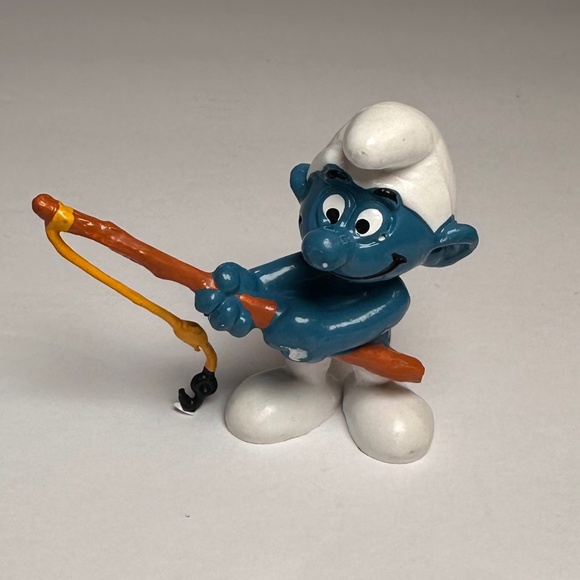 The fishing rod is no longer attached to the Smurf’s foot. Please see all photos for condition details.