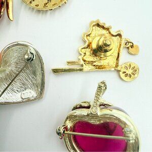 Vintage Five Red Gold Tone Enamel Strawberry Jelly Cherry Heart Brooches Lot