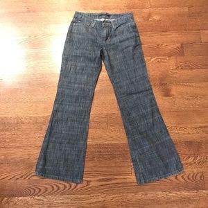 Super cool y2k flare jeans in dark wash! Low/mid rise and very comfy and stretchy! Awesome back pockets!