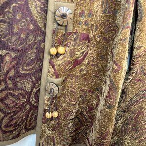 Vintage Flashback Tapestry Brocade Jacket - Earthy Boho Chic with Beaded Button Detail Size M