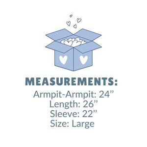 Measurements: Armpit to armpit – 24” | Length – 26” | Sleeve – 22”