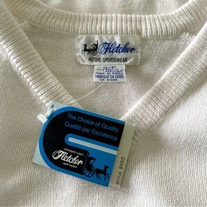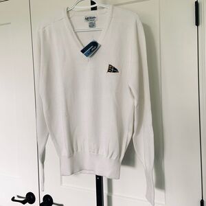 Men’s vintage white V-neck sweater. Old stock with original tags, made by Fletcher for the Royal Canadian Yacht Club.