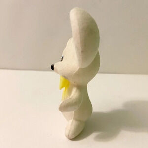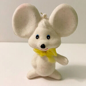 Vintage Flocked Mouse Christmas Ornament Yellow Bow 3 Inch Tall Figure
