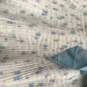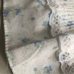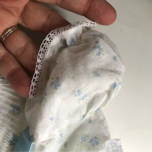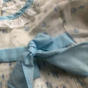 Charming baby dress with floral pattern. Features a blue ribbon. Perfect for special occasions.