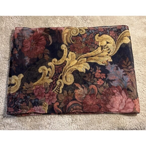 Vintage Floral & Baroque Pattern Sheer Scarf 54" Long 9.5" Wide 90's