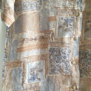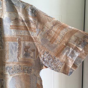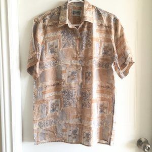 Vintage Floral Beige 100 % Silk Short Sleeve Shirt