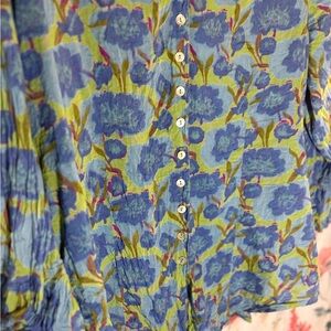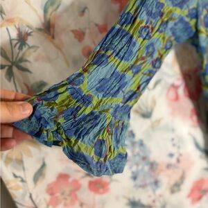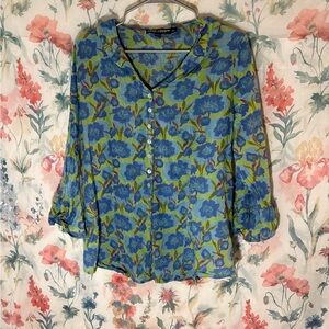 Vintage Floral Blue and Green Blouse