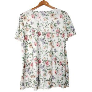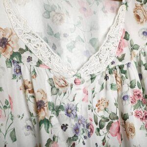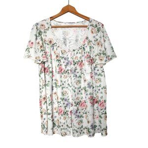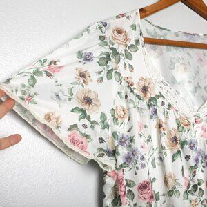Vintage Floral Button Up Night Shirt Top Lace Collar Granny Chic Pajama Blouse