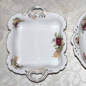 From Le Rosee Collection, a lovely pair of serving bowls in as new condition. Both bowls feature scalloped rim with gilt trim, and roses pattern. The bowls appear unused, without any utensil or dishwasher scratches and no wear to the roses or gilt. There are also no chips or cracks.