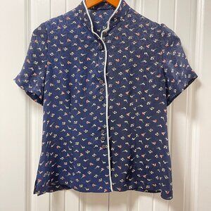 Vintage Floral Chinese Style Blouse Navy – S