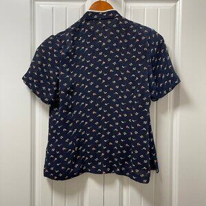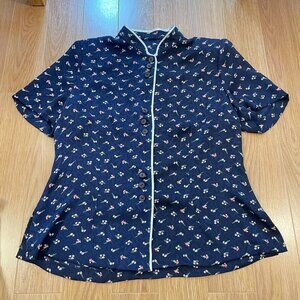 Vintage Floral Chinese Style Blouse Navy – S