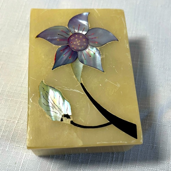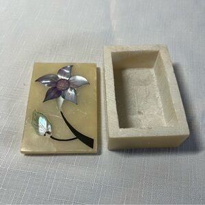 Vintage Floral Decorative Box w Purple Flower. Made in India. Inlaid in marble