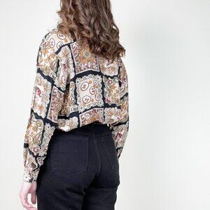 Vintage Floral Eccentric Print Button Down Shirt Eclectic Grandpa Grandma Blouse