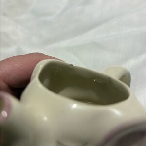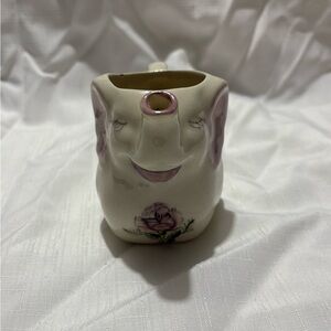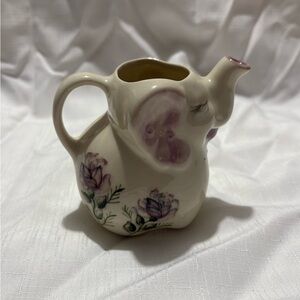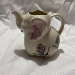 Charming ceramic pitcher featuring a floral elephant design. Perfect for adding a whimsical touch to your home decor. The cream base with pink floral accents makes it a delightful piece for any room.